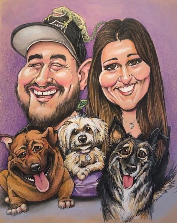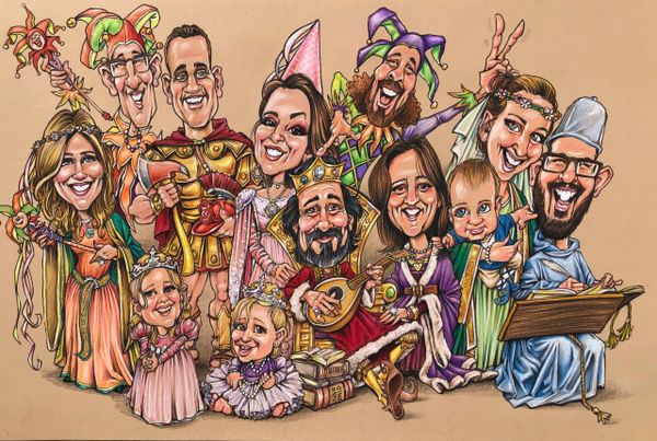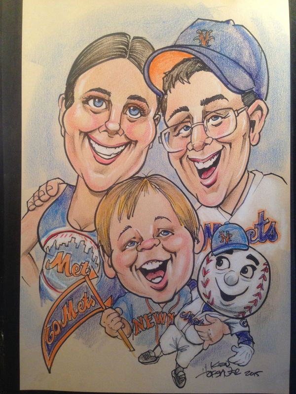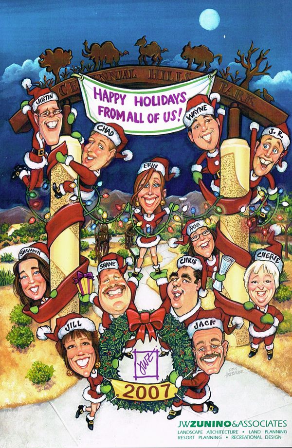 You can commission Ken to illustrate a family, friend, employees, and business associates, that you can frame and give as gifts or used as promotional distribution. A great idea wedding invites and holiday cards to have a personalized caricature of family or staff. Whatever you can think of I have already done it.