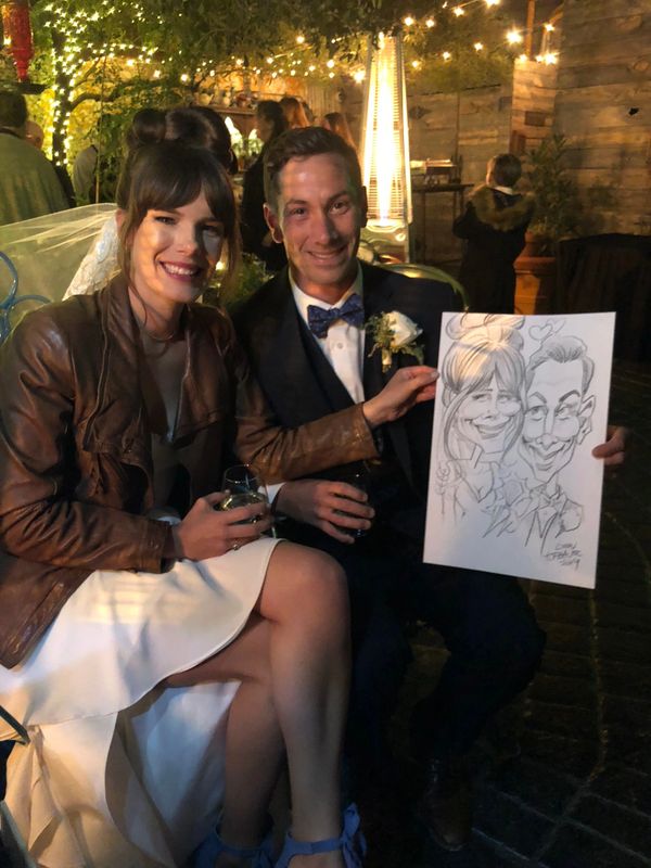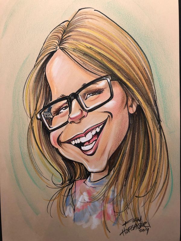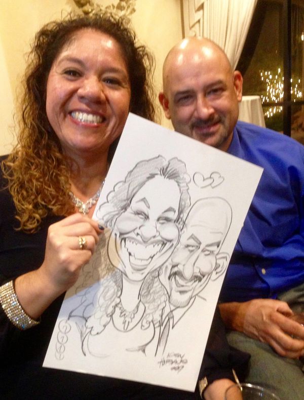 Working over 40 years in this business I have had the opportunity to fulfill the requests of some off the wall and out of the box ideas that clients have come up with. I have painted guests in the art styles of Picasso, Matisse, and 60's psychedelic pop art. I have drawn caricatures on napkins, phone cases, and coffee cups. I offer butt sketches, fashion drawings, and visual imagery to public speakers. I do hit and run drawings, that is where I hide among the crowd and draw guests while they are preoccupied with the festivities, then I hand it to them and run off. No matter how crazy the idea I can pull it off.