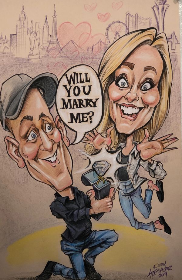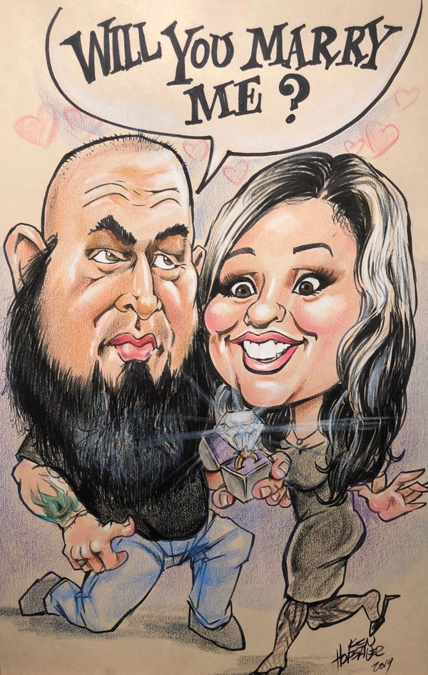 Your union should be unanimous with the artwork of Ken Hofbauer. He has done caricatures for marriage proposals, engagement announcements, wedding invitations, save the date cards, bridal showers, sign in boards, wedding receptions, and even of the pregnant mom several months later.