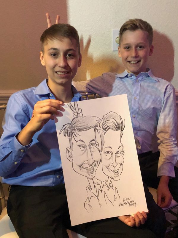 If you want to draw potential clients to your booth, then the best way to draw them in is by actually drawing them. The best way to draw them is by hiring world famous caricaturist- Ken Hofbauer. Caricatures are a unique and fun way to gather a crowd around your booth. A talented caricature artist from our team will help attract the attention you need. As people and potential clients wait for their drawings it is a great opportunity to network and demonstrate your products. Product logos and/or slogans can be printed on the paper so your contact information is easily seen and remembered, as they take their caricature cartoon home with them and proudly display them in their office or home for all the world to see.